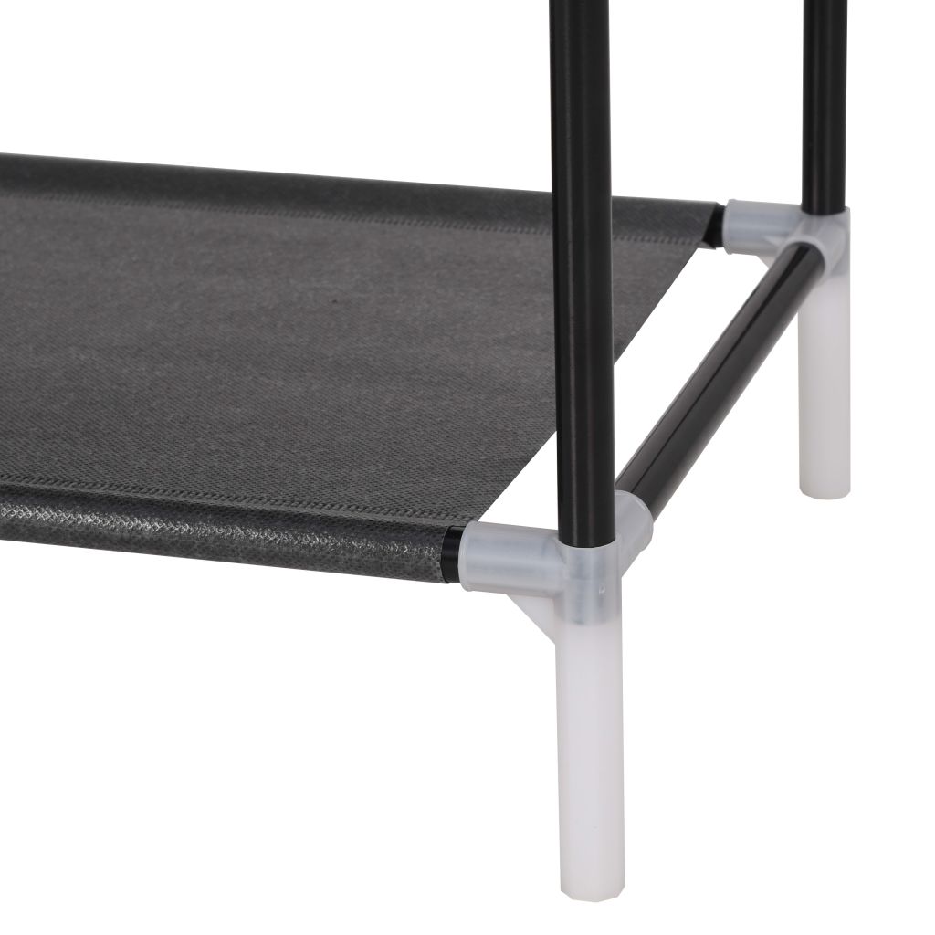 Possui uma estrutura em metal tubular, que é leve mas resistente, tornando a sapateira fácil de movimentar e bastante durável. Possui ainda oito prateleiras generosas feitas de tecido não tecido (TNT) ecológico e um amplo espaço para manter o seu calçado organizado e arrumado.