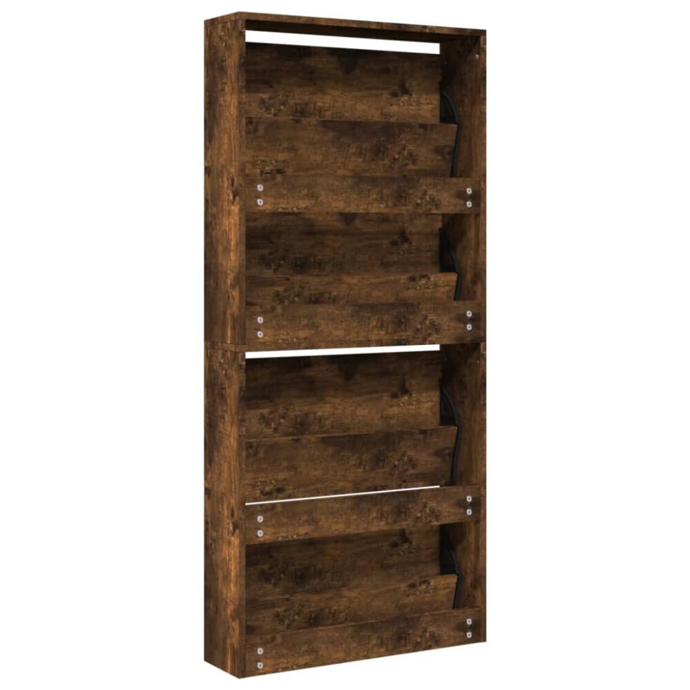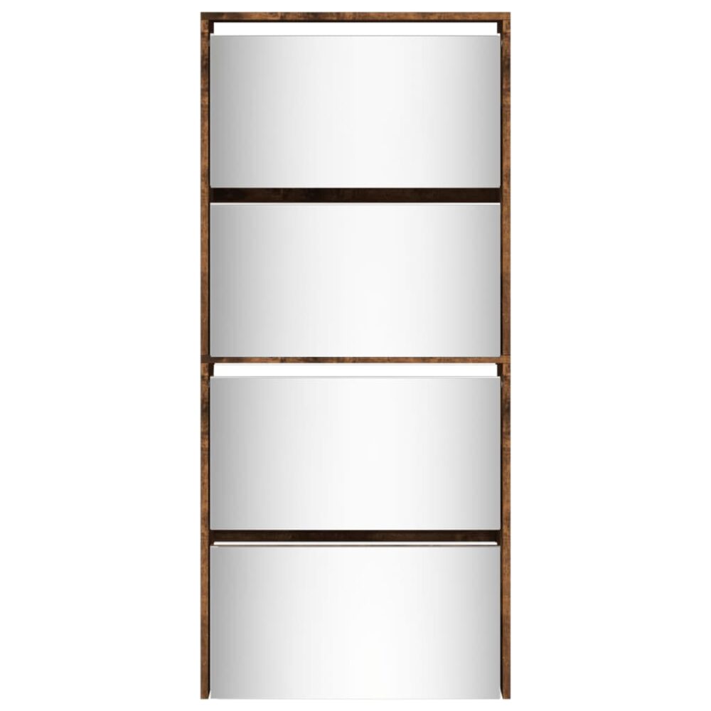 Sapateira com espelho 4 divisórias 63x17x134 cm carvalho fumado - PORTES GRÁTIS