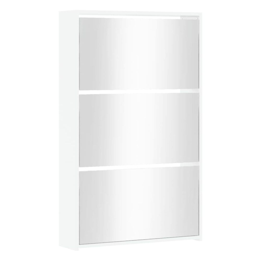 Sapateira + espelho 3 divisórias 63x17x102,5cm branco brilhante - PORTES GRÁTIS