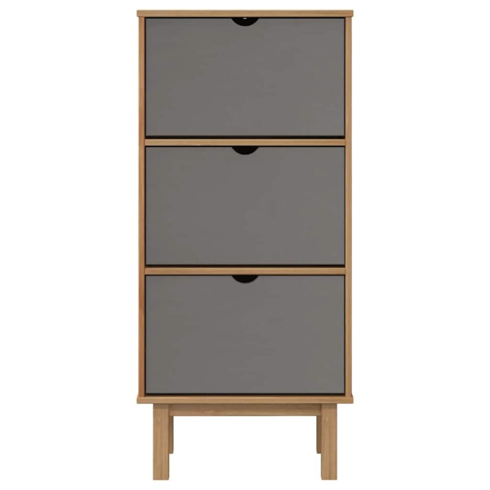 Sapateira OTTA c/ 3 gavetas pinho maciço castanho/cinza - PORTES GRÁTIS