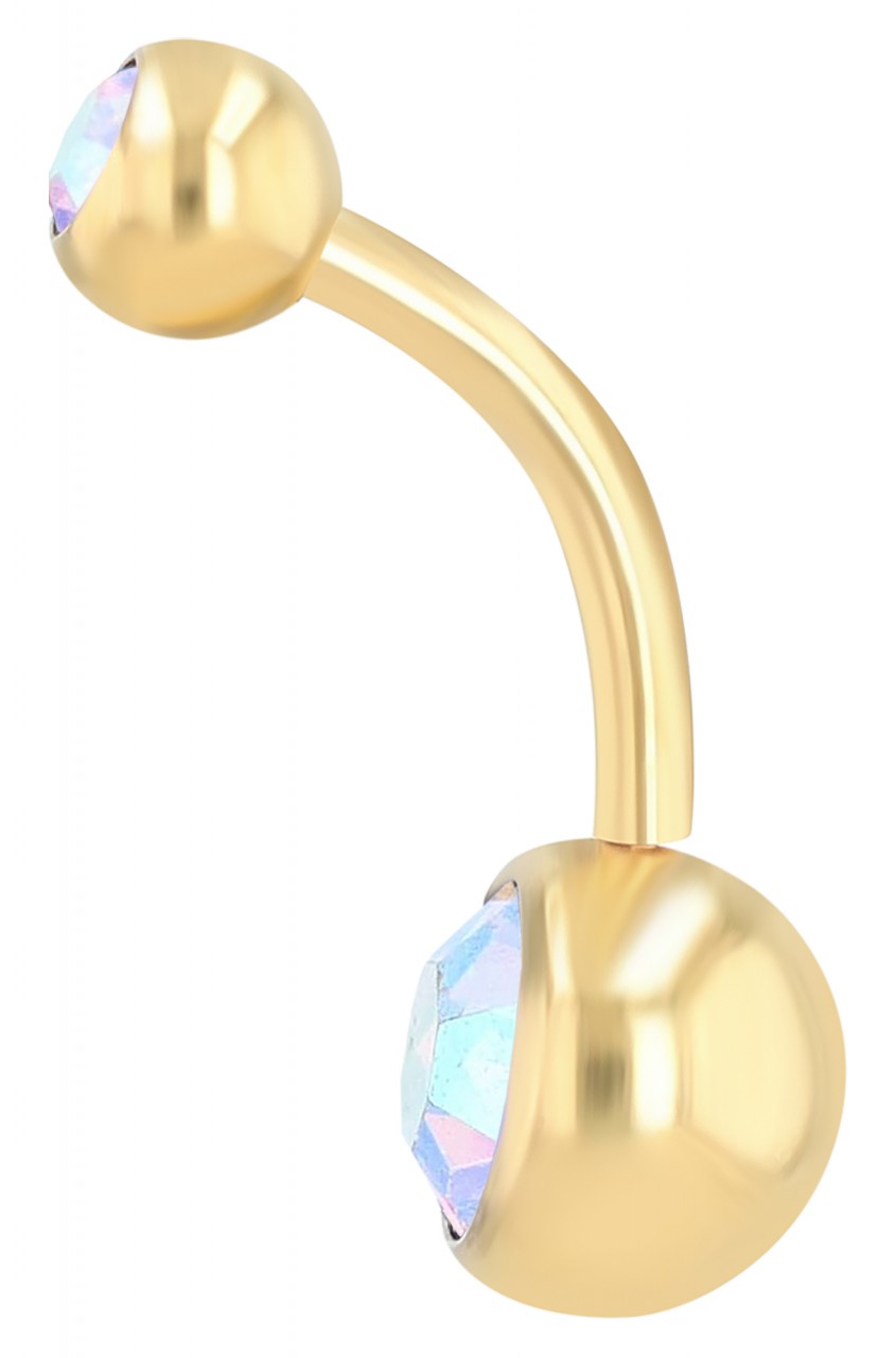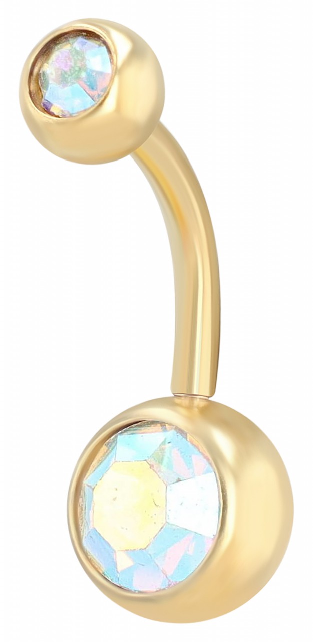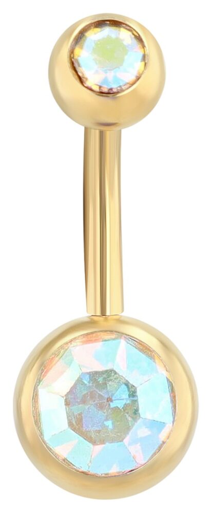 Akzent® Piercing de Umbigo em Aço Inoxidável Dourado com Pedra Multicor - 0061