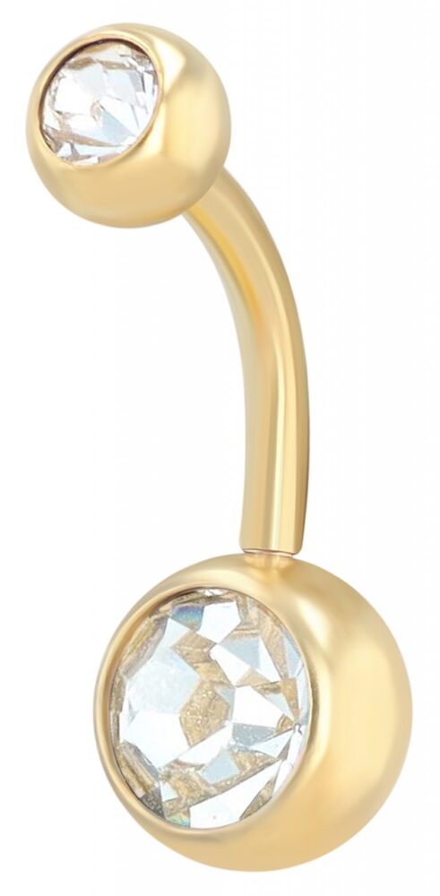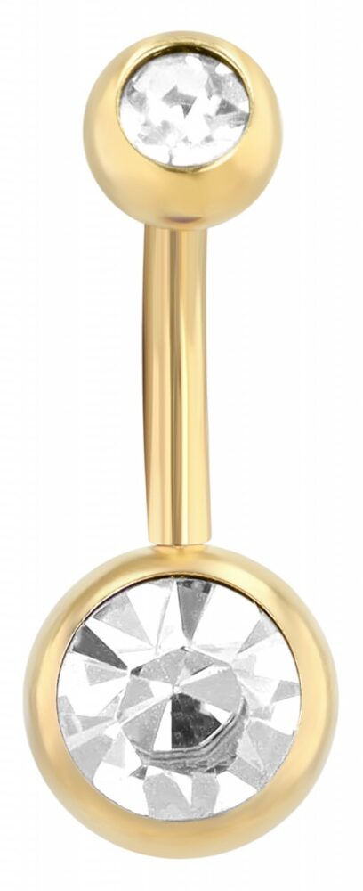 Akzent® Piercing de Umbigo em Aço Inoxidável Dourado com Pedra Branca - 0061