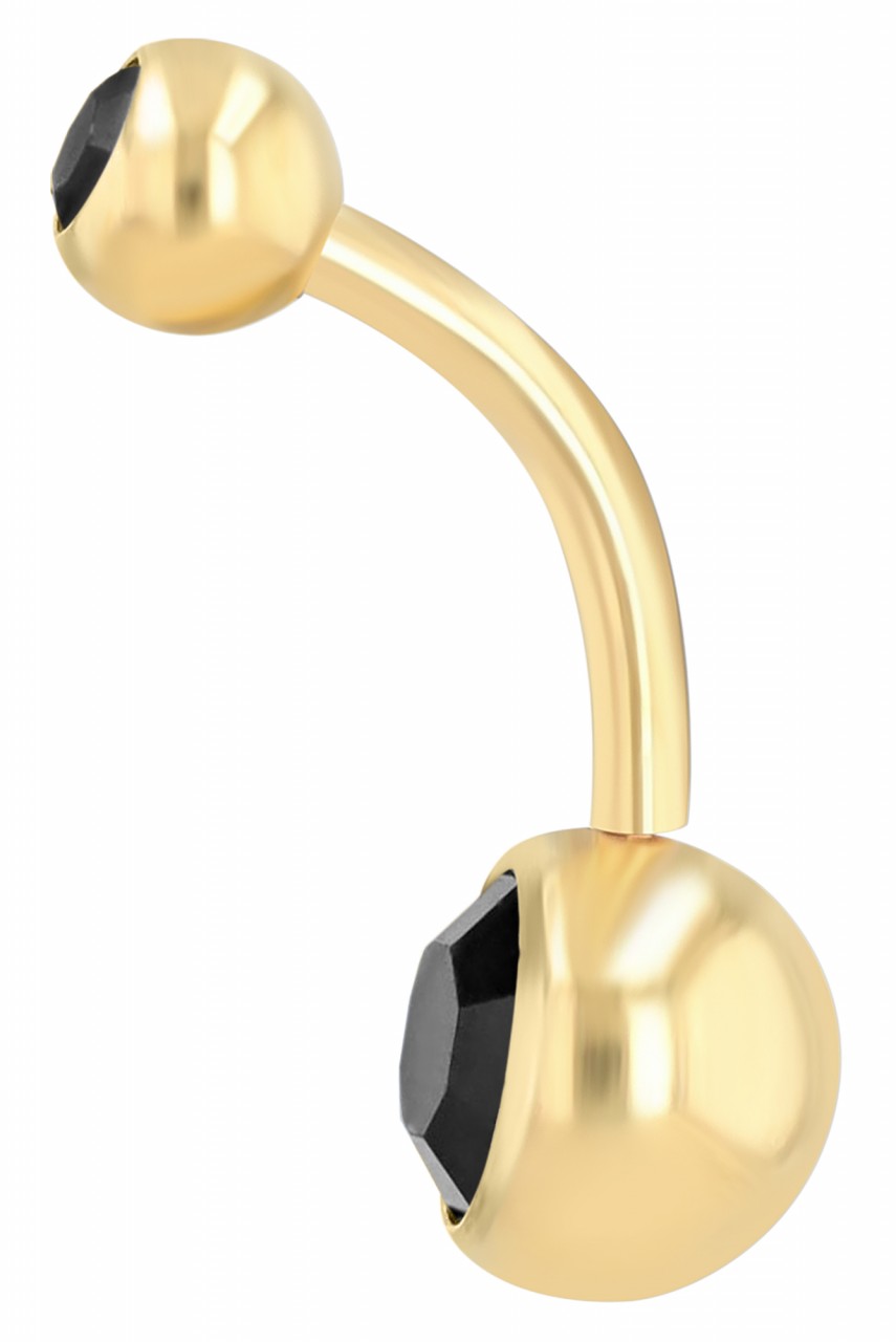 Akzent® Piercing de Umbigo em Aço Inoxidável Dourado com Pedra Preta - 0061