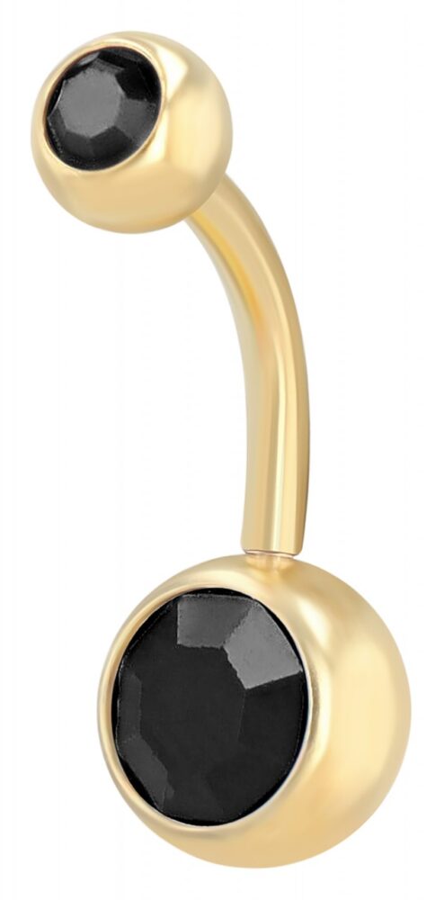 Akzent® Piercing de Umbigo em Aço Inoxidável Dourado com Pedra Preta - 0061