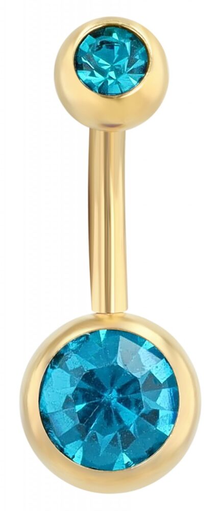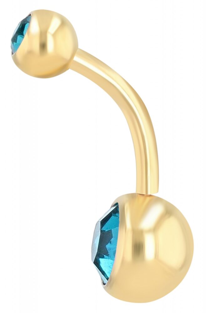 Akzent® Piercing de Umbigo em Aço Inoxidável Dourado com Pedra Azul - 0061