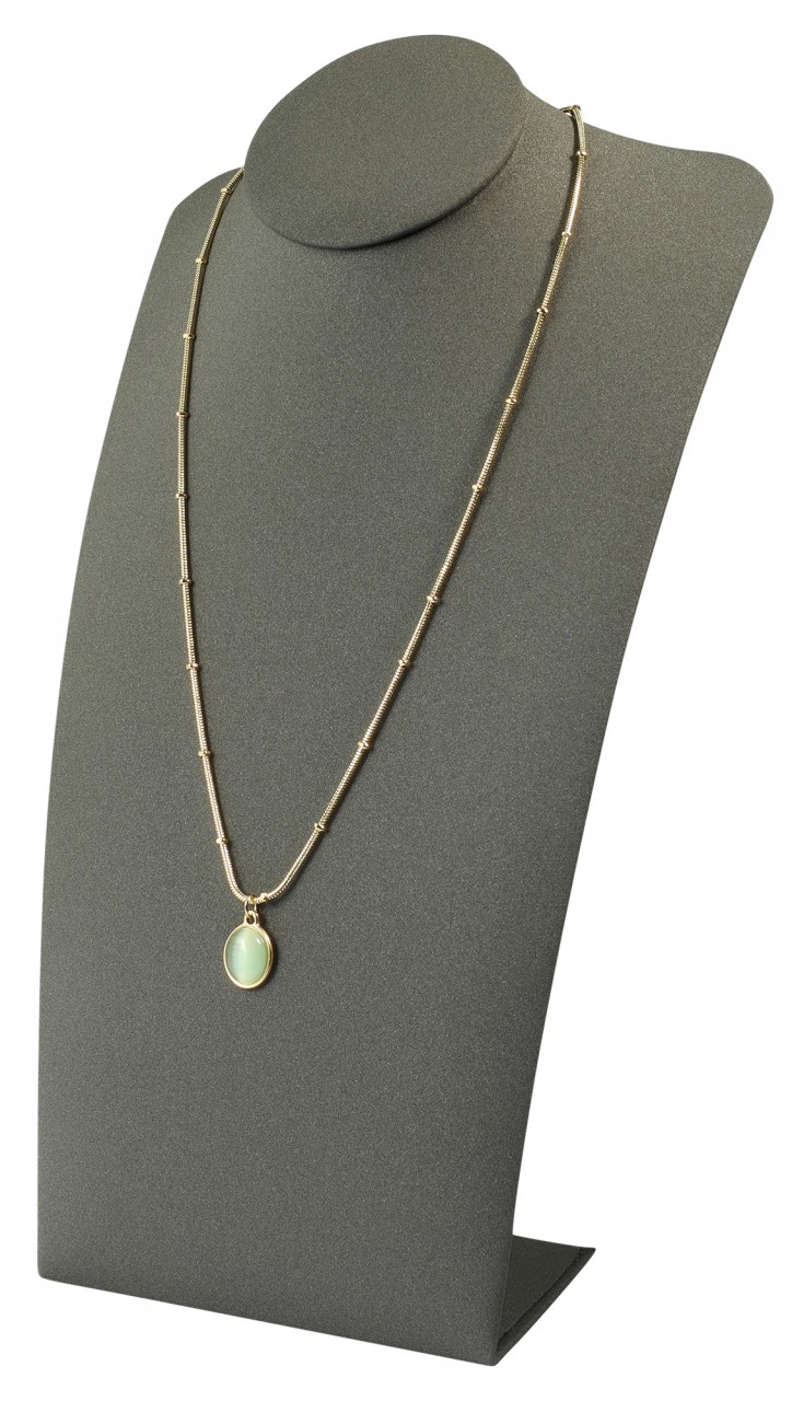 Bustos simples para exibição decorativa de suas joias. Esses bustos simples em três cores diferentes, preto, cinza ou branco, têm um design minimalista e moderno e destacarão particularmente bem suas joias expostas. Os bustos são feitos de metal e têm uma capa têxtil e um enchimento fino. As dimensões deste elegante suporte são A 25 cm x L 13,5 cm x P 7 cm.