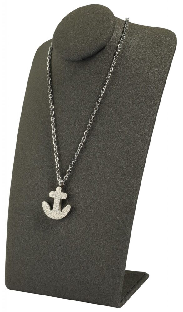 Bustos simples para exibição decorativa de suas joias. Esses bustos simples em três cores diferentes, preto, cinza ou branco, têm um design minimalista e moderno e destacarão particularmente bem suas joias expostas. Os bustos são feitos de metal e têm uma capa de PU e um enchimento fino. As dimensões deste elegante suporte são A 11,5 cm x L 6,7 cm x P 3,5 cm.