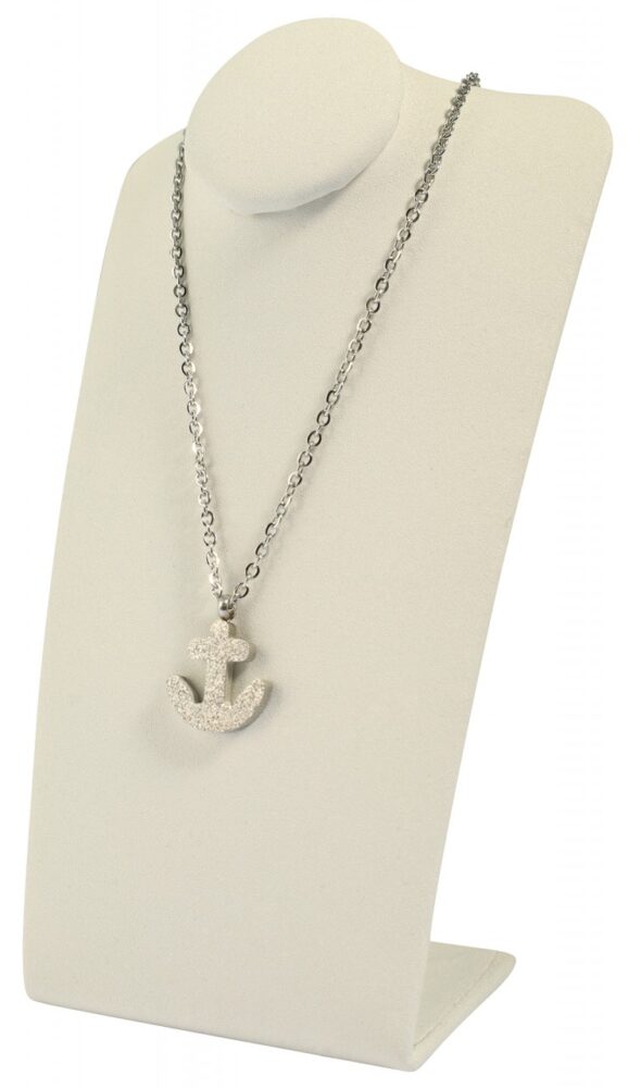 Bustos simples para exibição decorativa de suas joias. Esses bustos simples em três cores diferentes, preto, cinza ou branco, têm um design minimalista e moderno e destacarão particularmente bem suas joias expostas. Os bustos são feitos de metal e têm uma capa de PU e um enchimento fino. As dimensões deste elegante suporte são A 11,5 cm x L 6,7 cm x P 3,5 cm.