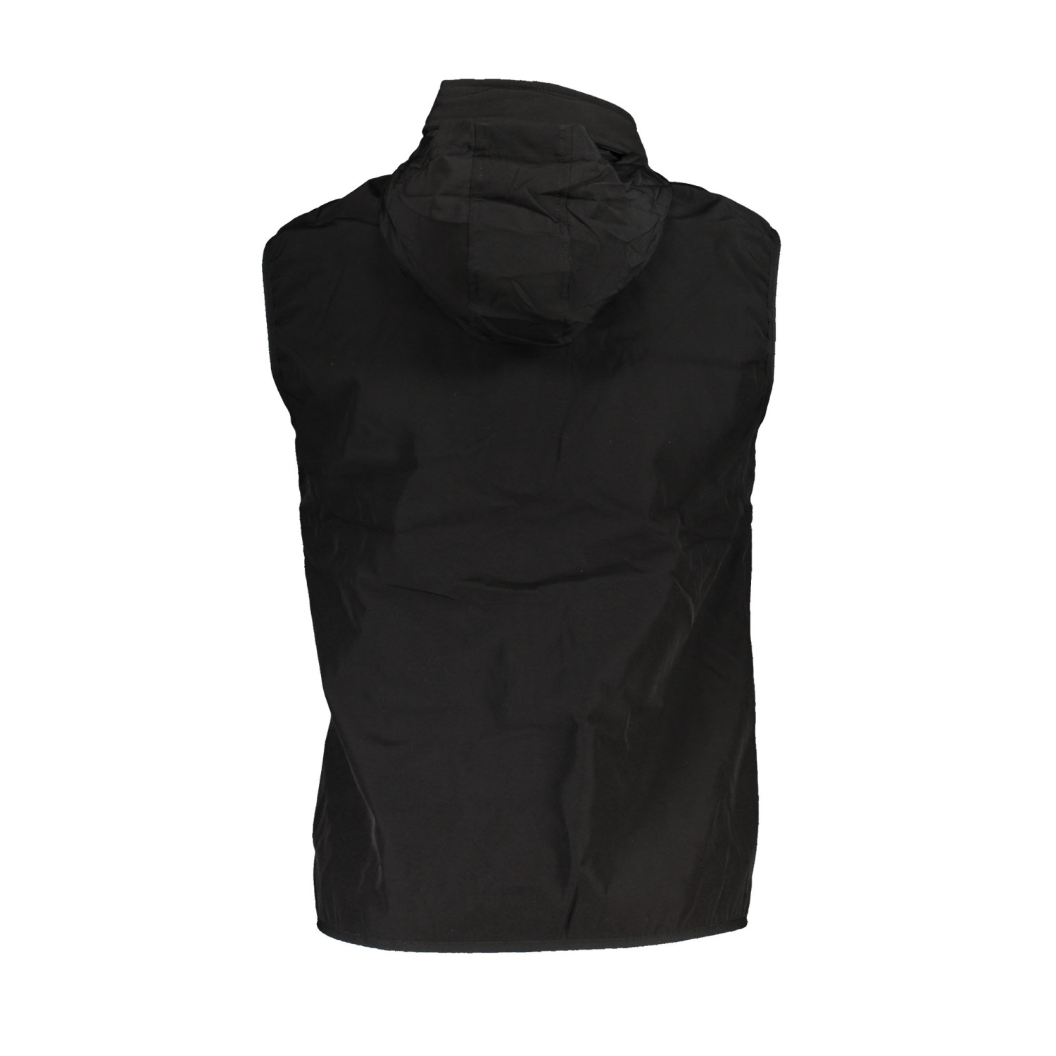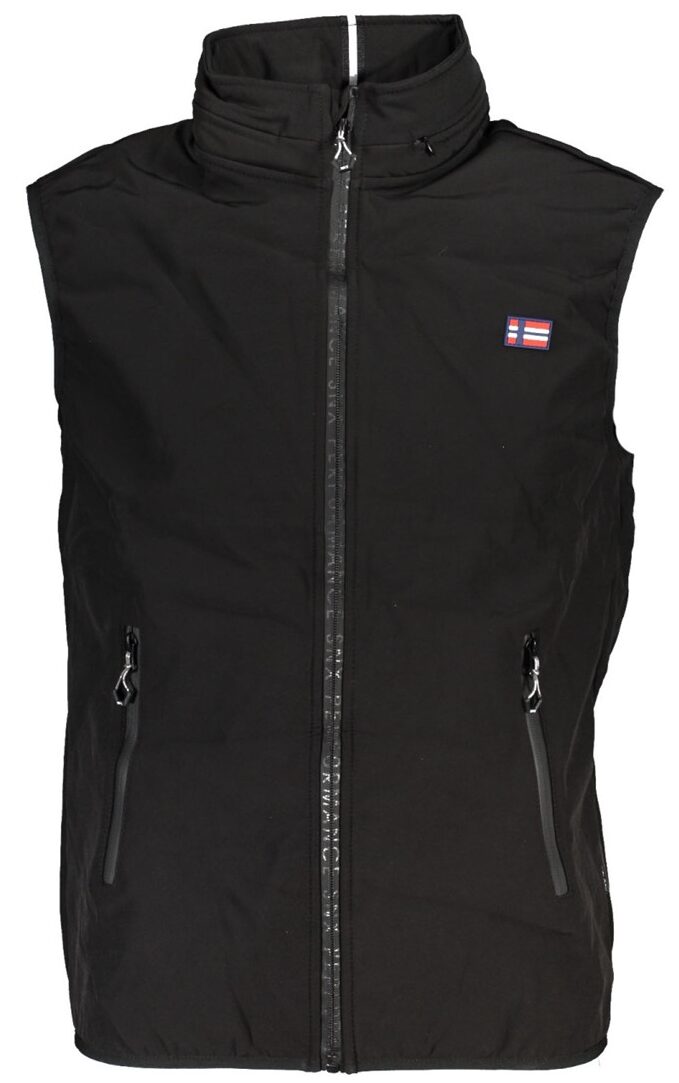 Colete sem mangas, 2 bolsos externos, 2 bolsos internos, capuz removível, zip, logótipo.
