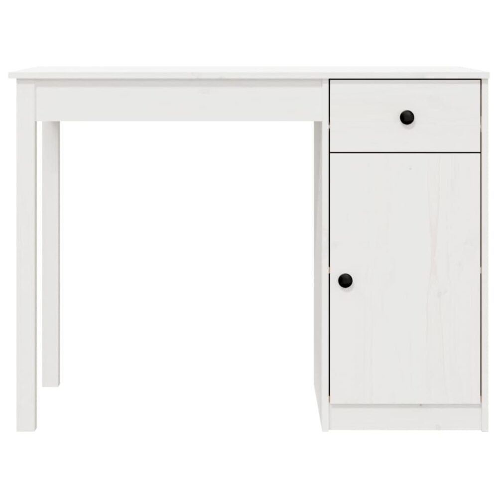 Esta elegante secretária em madeira, com um design simples e prático, destina-se definitivamente a ser o ponto focal da sua divisão. Madeira de pinho maciça: a madeira de pinho maciça é um bonito material natural. A madeira de pinho possui um grão reto e os nós dão ao material o seu aspeto rústico. A secretária de escritório é feita de madeira maciça para uma robustez e durabilidade extra.Amplo espaço de arrumação: a secretária robusta possui 1 gaveta e 1 armário, proporcionando espaço de arrumação para manter livros, ficheiros ou outros artigos essenciais ao alcance.Tampo espaçoso: o tampo é ideal para colocar o seu computador, teclado e rato, ou portátil, sendo portanto ideal para escrever ou ler confortavelmente.Amplas aplicações: a secretária vertical pode ser usada como uma secretária para escrita e trabalho ou, então, como um local para colocar o computador. É adequada para o estúdio, escritório e quaisquer estilos de decoração. Atenção:Para evitar que o produto se vire, deve utilizar o dispositivo de fixação na parede fornecido. Nota:Cada produto é fornecido com um manual na caixa para facilitar a montagem.