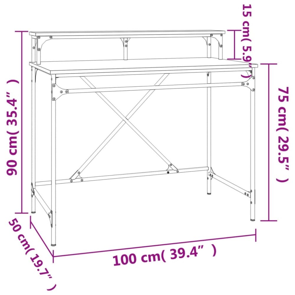 Secretária 100x50x90 cm derivados madeira/ferro carvalho sonoma - PORTES GRÁTIS