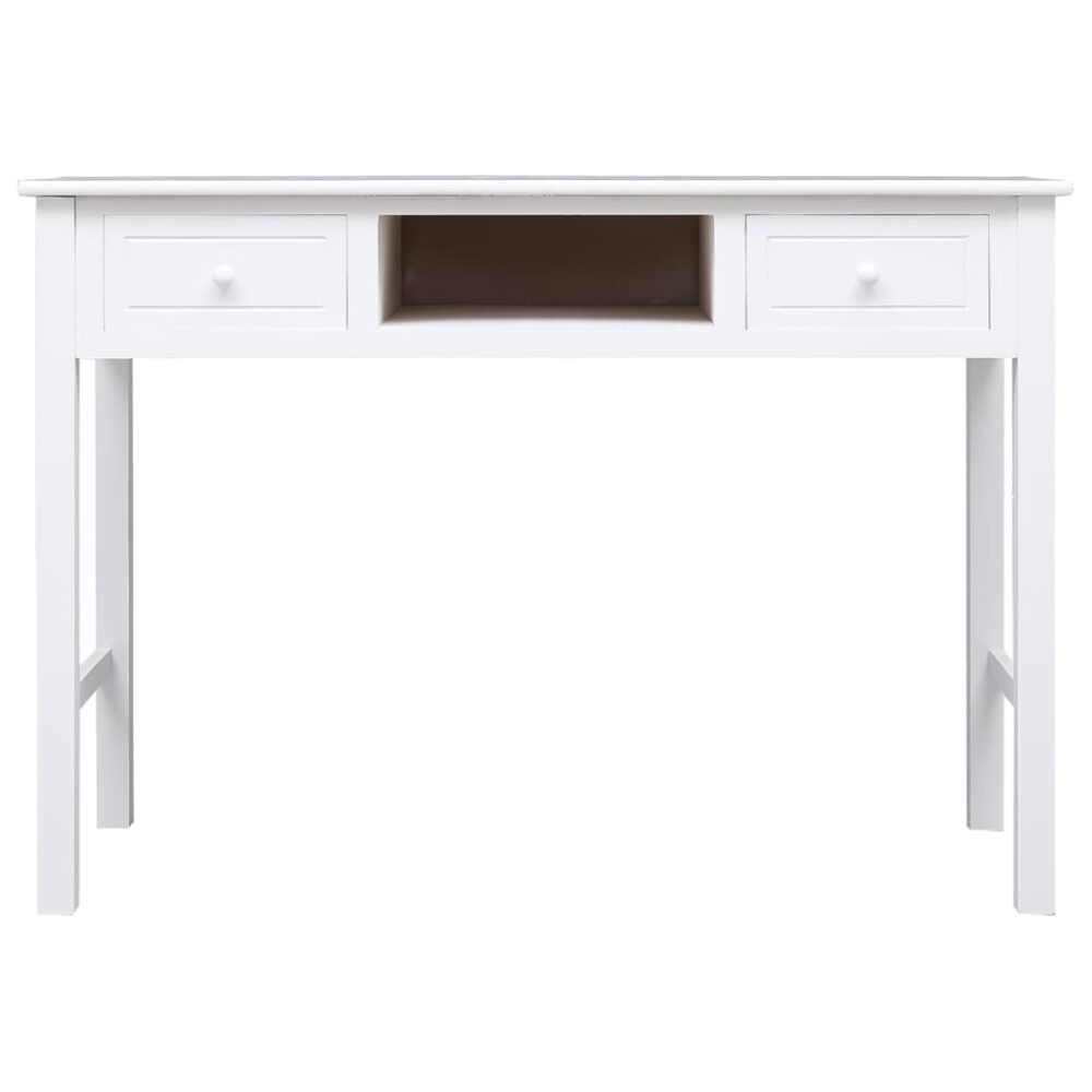 Esta elegante e prática secretária de madeira será um ótimo complemento para a decoração da sua casa. Madeira de paulownia maciça: esta secretária de escritório é feita em madeira de paulownia maciça. A madeira de paulownia maciça é um bonito material natural. A madeira de paulownia é altamente resistente a insetos e ao apodrecimento.Amplo espaço de arrumação: esta robusta secretária possui 2 gavetas e 1 compartimento aberto no meio, permitindo-lhe manter os ficheiros e outros objetos essenciais do seu escritório residencial organizados e ao seu alcance.Amplas aplicações: esta secretária pode ser usada como uma mesa consola, mesa para computador, mesa de apoio, entre outros.Tampo espaçoso: o tampo é ideal para colocar o seu computador, teclado e rato, ou portátil, sendo portanto ideal para escrever ou ler confortavelmente. Nota:Cada produto é fornecido com um manual na caixa para facilitar a montagem.