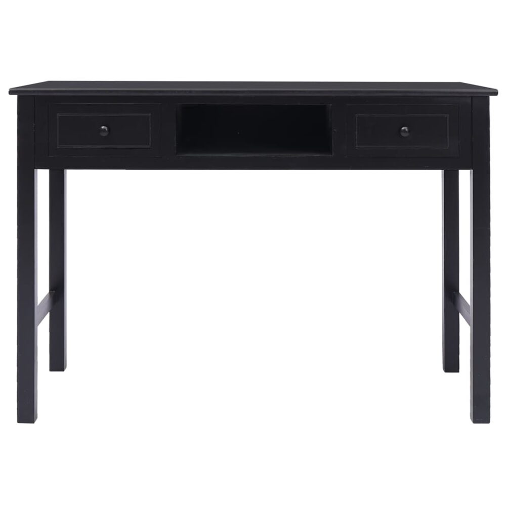 Esta elegante e prática secretária de madeira será um ótimo complemento para a decoração da sua casa. Madeira de paulownia maciça: esta secretária de escritório é feita em madeira de paulownia maciça. A madeira de paulownia maciça é um bonito material natural. A madeira de paulownia é altamente resistente a insetos e ao apodrecimento.Amplo espaço de arrumação: esta robusta secretária possui 2 gavetas e 1 compartimento aberto no meio, permitindo-lhe manter os ficheiros e outros objetos essenciais do seu escritório residencial organizados e ao seu alcance. O design de 2 gavetas permite libertar muito espaço tanto para trabalho como para entretenimento.Amplas aplicações: esta secretária pode ser usada como uma mesa consola, mesa para computador, mesa de apoio, entre outros.Tampo espaçoso: o tampo é ideal para colocar o seu computador, teclado e rato, ou portátil, sendo portanto ideal para escrever ou ler confortavelmente. Nota:Cada produto é fornecido com um manual na caixa para facilitar a montagem.