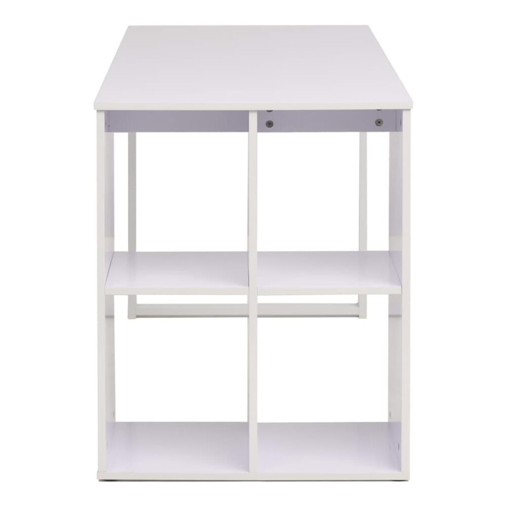 Esta secretária é composta por um tampo de aglomerado e pernas de aço e é estável, durável e de baixa manutenção. Os 4 grandes compartimentos laterais da mesa oferecem um amplo espaço de armazenamento para manter os seus auxiliares de estudo tais como livros, pastas ou outros itens úteis ao seu alcance. A mesa é fácil de limpar com um pano húmido devido ao seu acabamento em melamina.