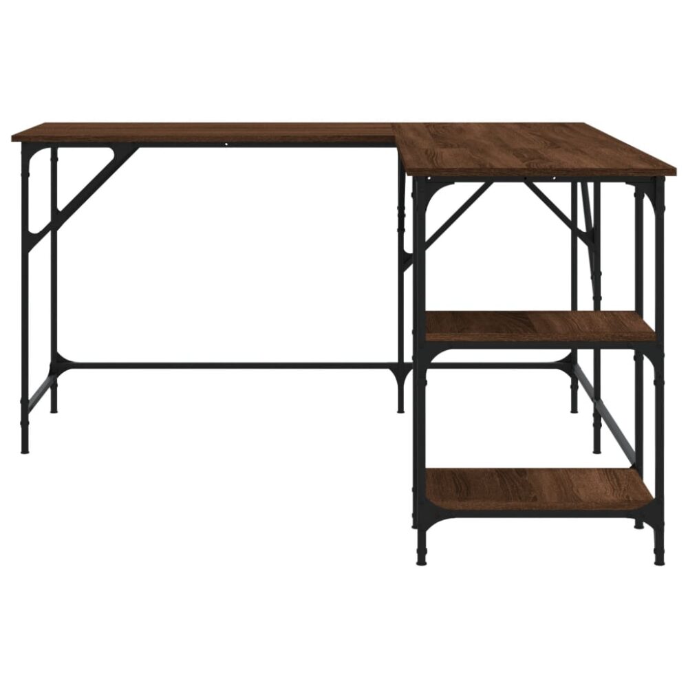 Esta secretária simples destina-se a ser uma escolha prática e decorativa para o seu espaço habitacional! Material durável: os derivados de madeira possuem uma qualidade excecional e oferecem não só uma superfície suave mas também força, estabilidade e resistência à humidade. Feita de derivados de madeira, a secretária de escritório é fácil de limpar.Amplo espaço de arrumação: esta secretária com prateleiras oferece um espaço amplo de arrumação para poder manter o seu computador, pastas, documentos, decorações e outros artigos essenciais bem organizados e ao seu alcance!Design em forma de L: a escrivaninha apresenta um design em forma de L, o que faz com que seja fácil encaixá-la em qualquer canto para maximizar o seu espaço limitado.Pés ajustáveis: os pés ajustáveis com almofadas de plástico mantêm a secretária equilibrada em superfícies irregulares e aumentam a estabilidade.Estrutura de metal: a estrutura de metal acrescenta um estilo industrial no seu interior, enquanto assegura durabilidade e estabilidade. Atenção:Para evitar que o produto se vire, deve utilizar o dispositivo de fixação na parede fornecido.
