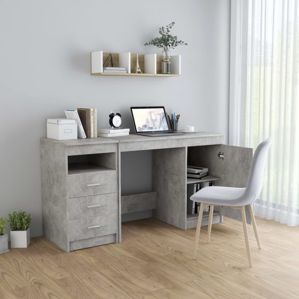 Secretária 140x50x76 cm contraplacado cinzento cimento - PORTES GRÁTIS