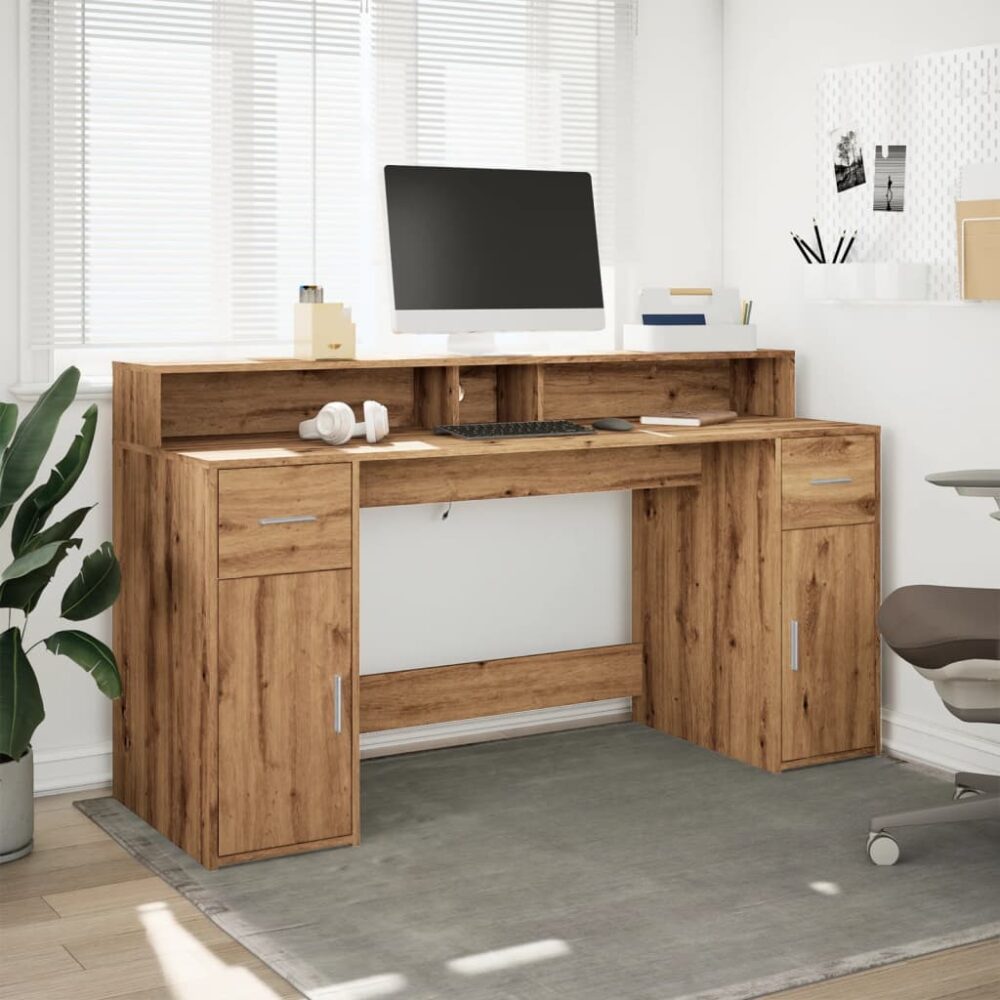 Secretária c/ luzes LED derivados de madeira carvalho artisiano - PORTES GRÁTIS