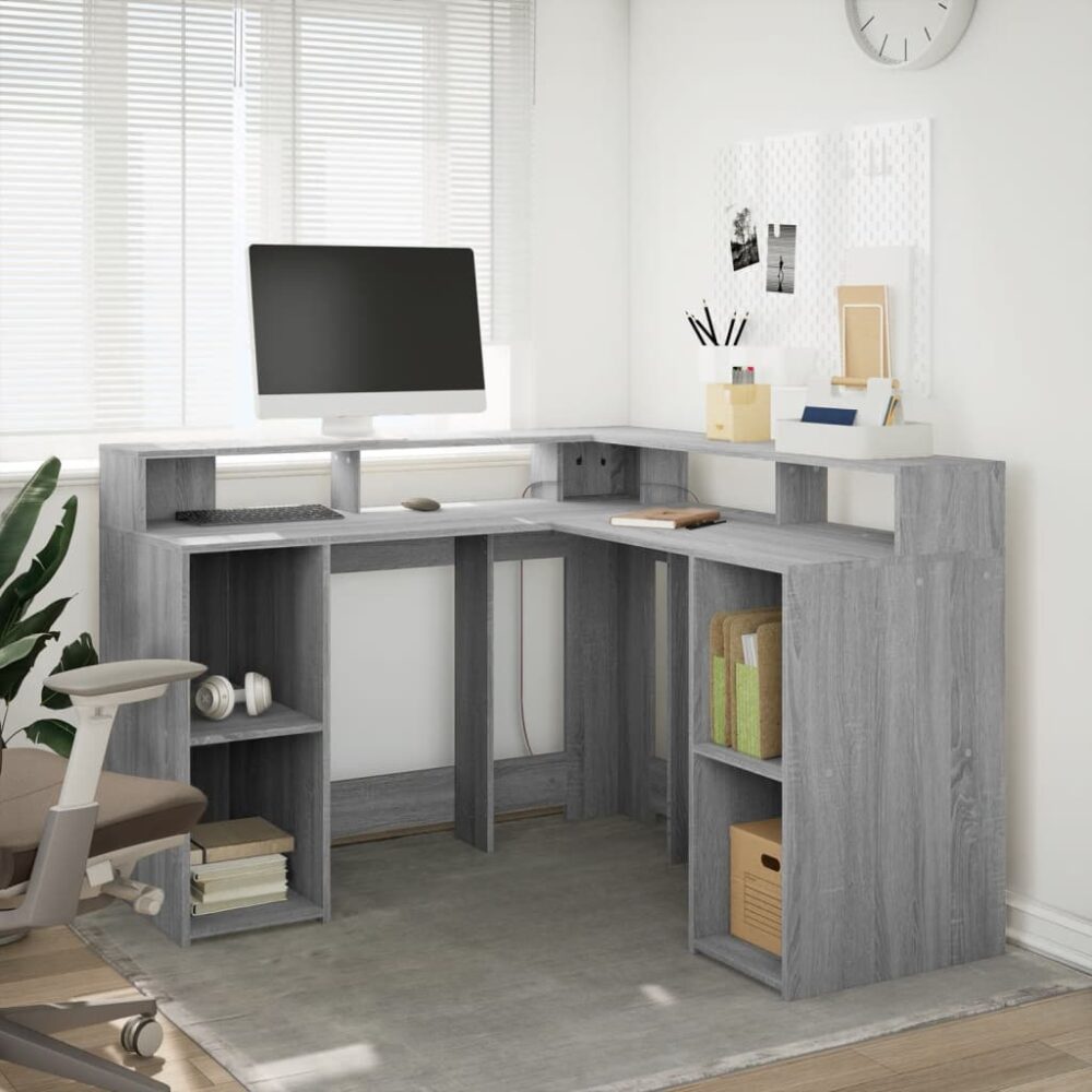 Secretária c/ luzes LED derivados de madeira cinzento sonoma - PORTES GRÁTIS