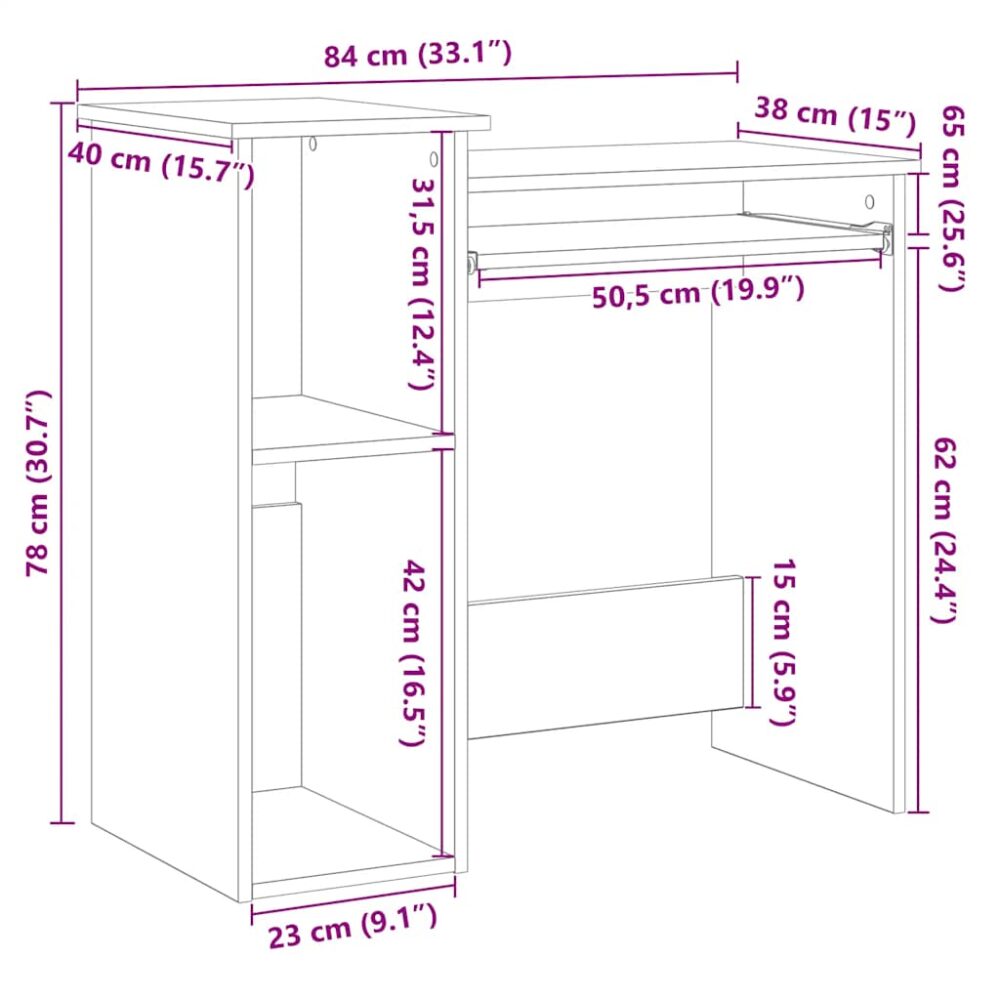 Secretária c/ prateleiras derivados de madeira cinzento sonoma - PORTES GRÁTIS