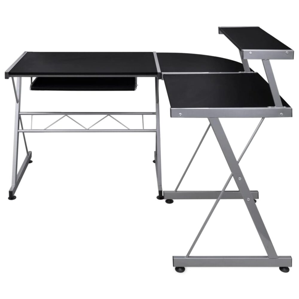 Esta secretária de computador imprescindível integra-se perfeitamente no seu escritório residencial, sala de estudo, quarto e sala de estar. Material durável: os derivados de madeira possuem uma qualidade excecional e oferecem uma superfície suave, bem como força, estabilidade e resistência à humidade. Prática secretária de canto: a secretária em forma de L fornece um amplo espaço de trabalho e inclui uma bandeja para teclado deslizante, o que lhe permite ter o seu ambiente de trabalho mais arrumado e limpo. Espaço amplo: a ampla secretária de trabalho com uma prateleira superior oferece-lhe um espaço de arrumação adicional. Design flexível: a secretária de estudo com uma prateleira pode ser montada no lado direito ou esquerdo da secretária de computador. Pode instalá-la de acordo com as suas necessidades e torná-la adequada para a sua divisão. Nota:Cada produto é fornecido com um manual de montagem na caixa para facilitar a montagem.