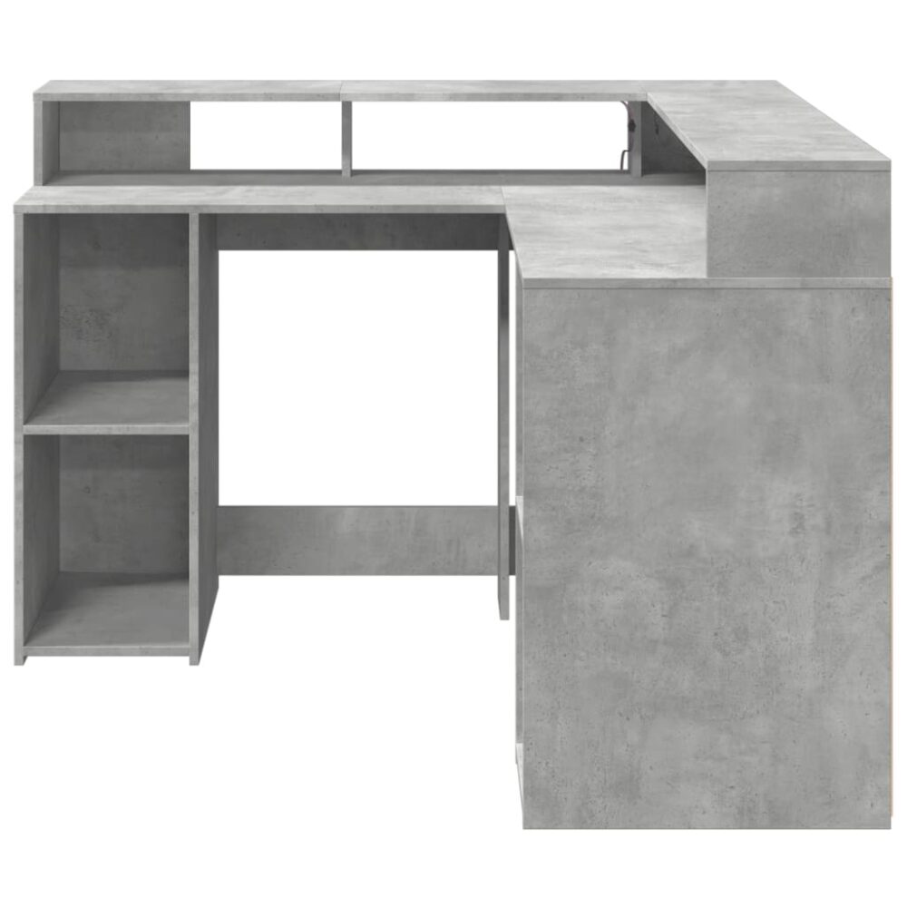 Secretária luzes LED 130x130x91cm deriv. madeira cinza cimento - PORTES GRÁTIS