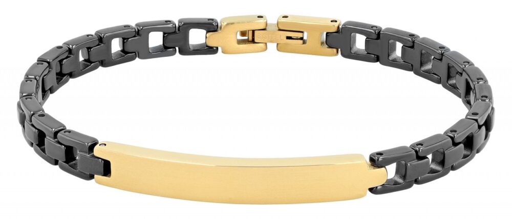 A pulseira de identificação "Seoa" - design moderno, feita de cerâmica de alta qualidade e aço inoxidável. Com um comprimento de 18 cm, uma largura de 5,5 mm e uma espessura de 3 mm, esta pulseira de identificação adapta-se elegantemente ao pulso do utilizador. O fecho de pressão em aço inoxidável garante uma fixação segura e realça o aspeto elegante. A placa de gravação oferece espaço suficiente para uma mensagem pessoal, um nome ou uma data especial. Disponível nas cores clássicas preto ou branco com detalhes em dourado ou prateado, a "Seoa" é um acessório versátil e o presente perfeito para o Dia dos Namorados, um aniversário ou qualquer outra ocasião.