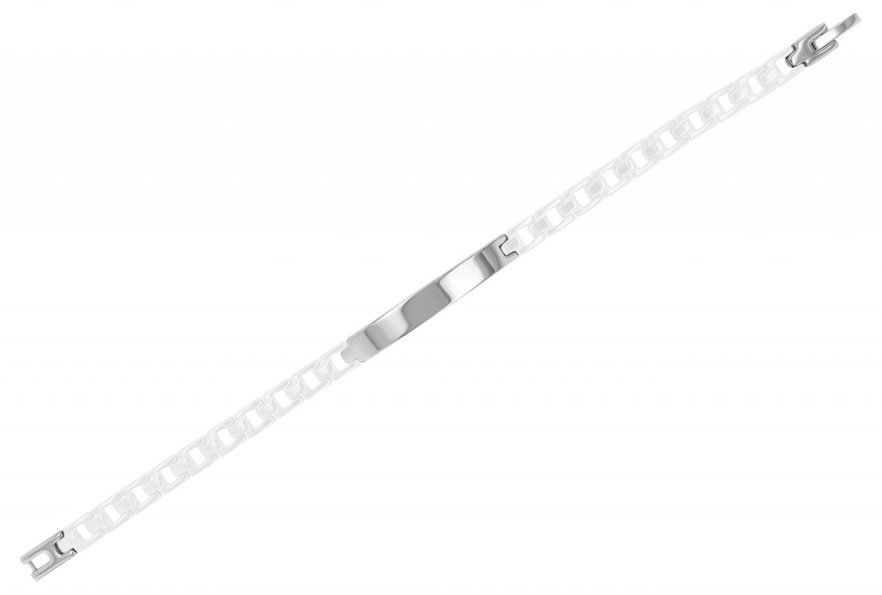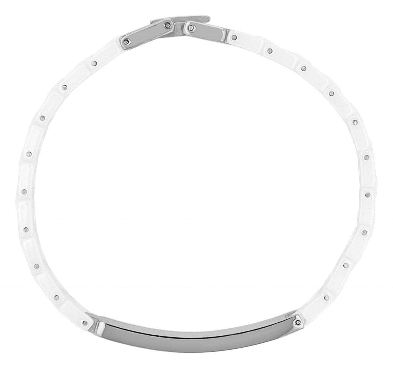A pulseira de identificação "Seoa" - design moderno, feita de cerâmica de alta qualidade e aço inoxidável. Com um comprimento de 18 cm, uma largura de 5,5 mm e uma espessura de 3 mm, esta pulseira de identificação adapta-se elegantemente ao pulso do utilizador. O fecho de pressão em aço inoxidável garante uma fixação segura e realça o aspeto elegante. A placa de gravação oferece espaço suficiente para uma mensagem pessoal, um nome ou uma data especial. Disponível nas cores clássicas preto ou branco com detalhes em dourado ou prateado, a "Seoa" é um acessório versátil e o presente perfeito para o Dia dos Namorados, um aniversário ou qualquer outra ocasião.
