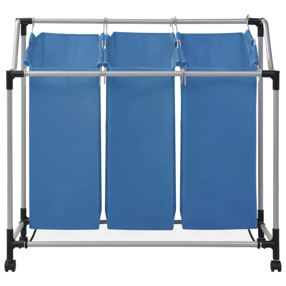 Separador de roupa suja com 3 sacos aço azul - PORTES GRÁTIS