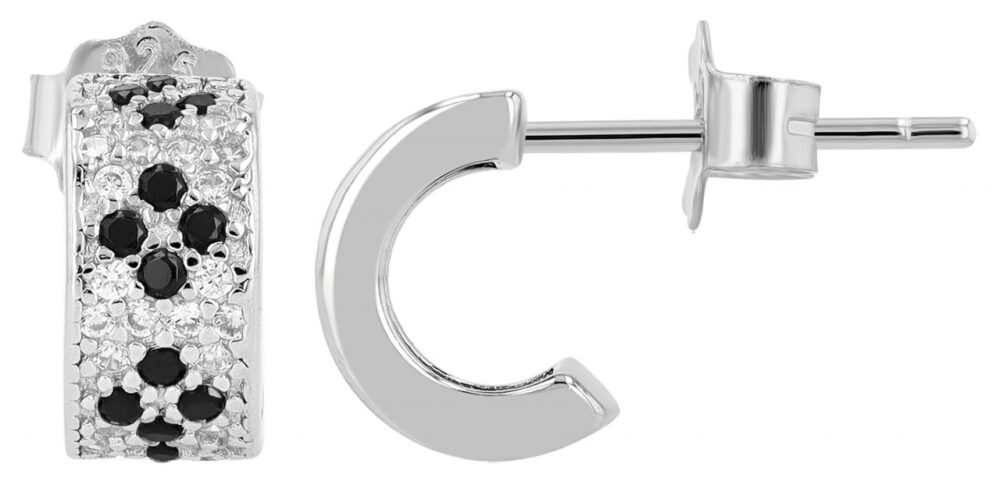 Argolas "Sera" Prateadas e Pretas em Prata de Lei 925 Banhada a Ródio com Zircónias 0609