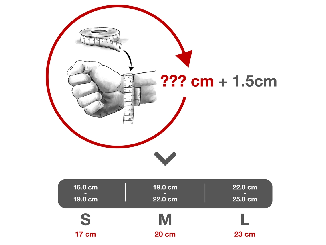Nossas pulseiras são todas entregues com um elo extra anexado, o que significa que cada comprimento básico especificado pode ser estendido em 1 cm. Então você tem um pouco de margem caso não tenha certeza por causa do tamanho, precise de um tamanho intermediário ou apenas queira usar a pulseira um pouco mais folgada.