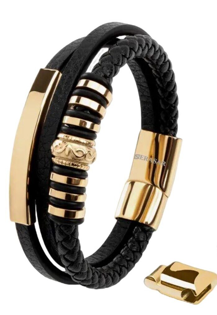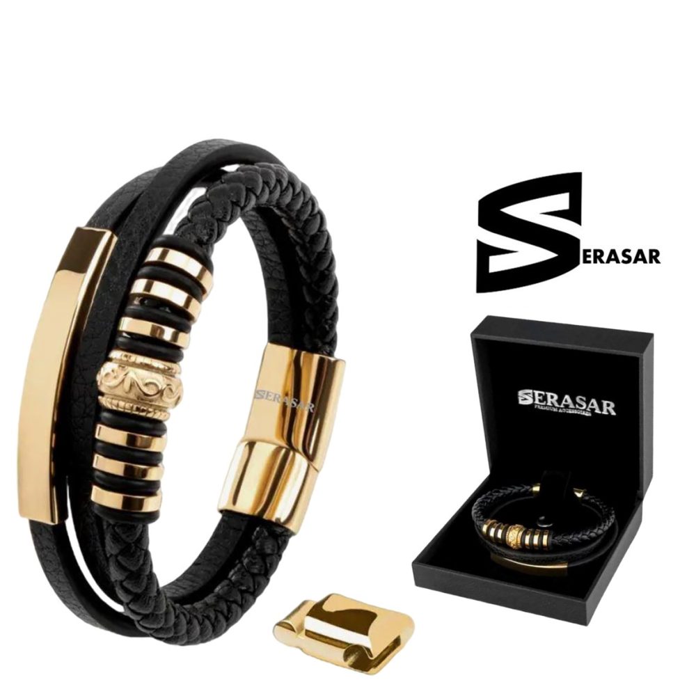 Serasar®Pulseira Premium de Couro “Shine” Dourada 17 cm