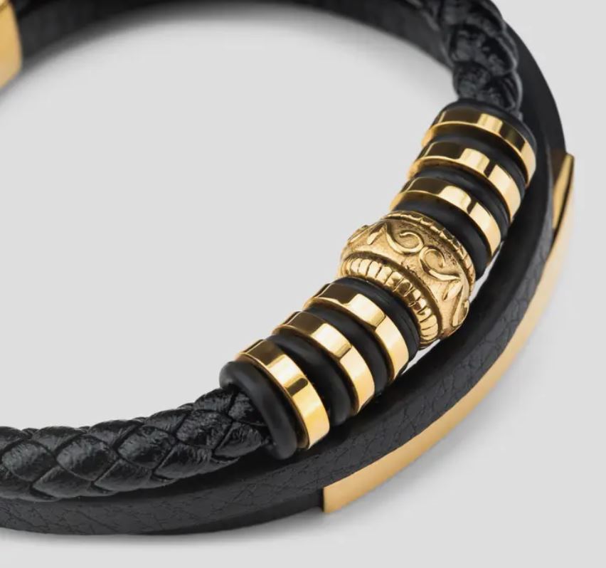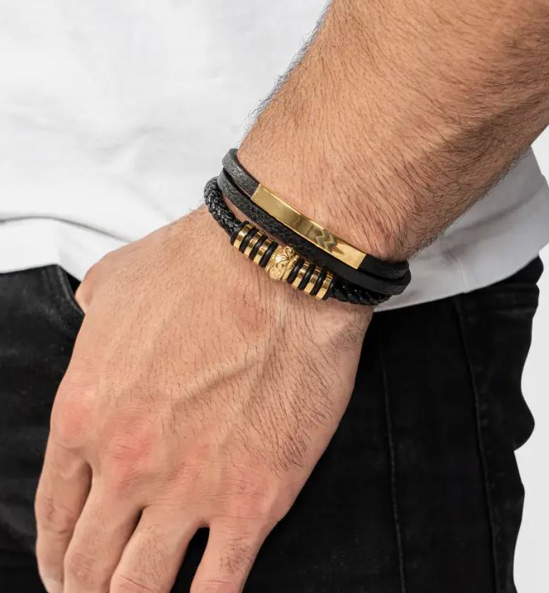 Apenas couro verdadeiro é usado nas nossas pulseiras. Pode sentir e cheirar isso. O fecho em aço inoxidável escovado não enferruja.