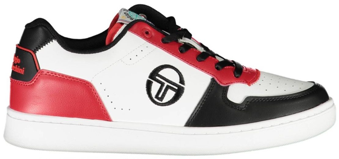 Calçado desportivo com atacadores, detalhes contrastantes, bordado, logótipo.