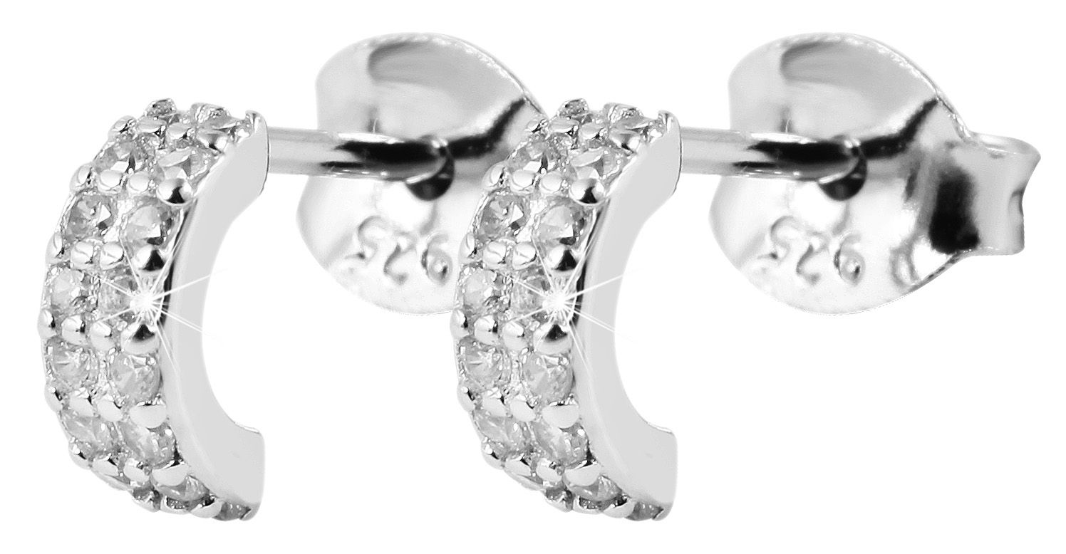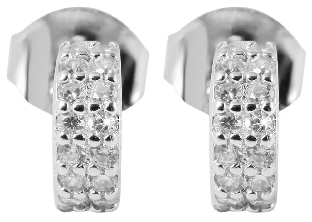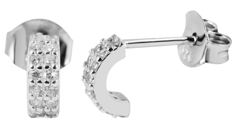 - Os brincos, com a sua forma semi-circular, são decorados com 16 zircónias brancas.