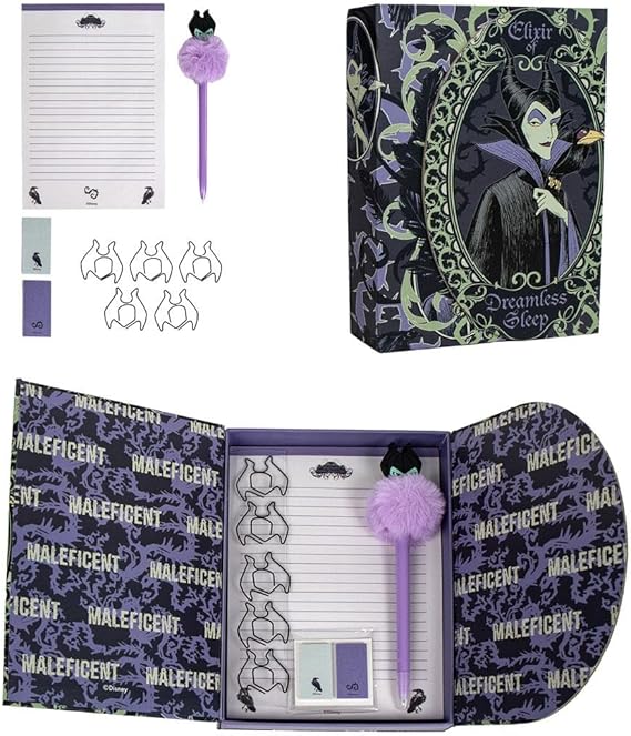 • Descubra o lado mais sombrio e fascinante do universo Disney com este conjunto de papelaria inspirado nos vilões icónicos. Com detalhes que evocam a essência de personagens inesquecíveis como Maléfica, Úrsula e Cruella de Vil, este conjunto é a escolha perfeita para quem quer adicionar um toque de mistério e poder às suas notas e projetos criativos.