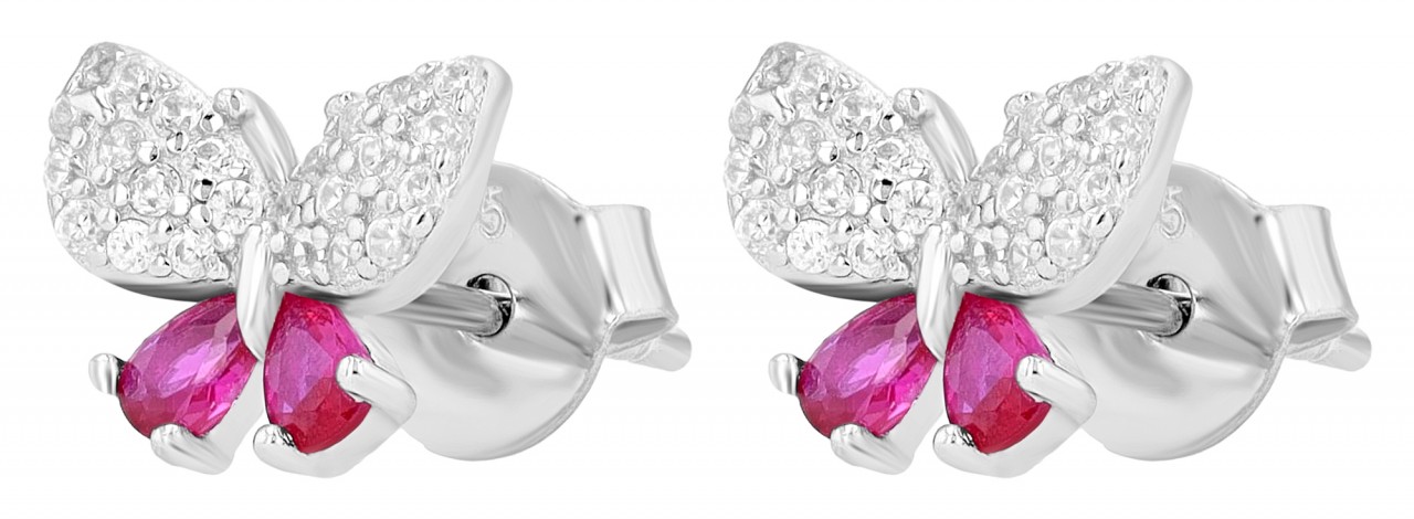 Brincos "Shila" Prateados e Rosa em Prata de Lei 925 Banhada a Ródio com Zircónias 0703
