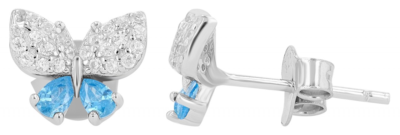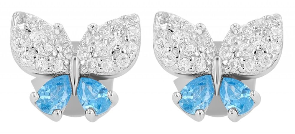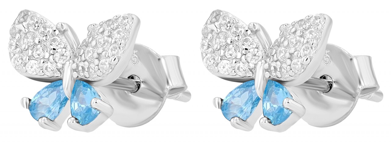 Brincos "Shila" Prateados e Azuis em Prata de Lei 925 Banhada a Ródio com Zircónias 0703