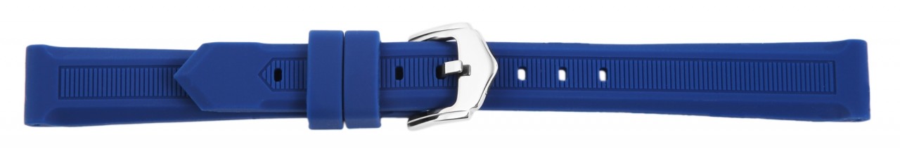 A bracelete de silicone azul está disponível em larguras de 12 mm, 14 mm, 16 mm, 18 mm, 20 mm, 22 mm, 24 mm, 26 mm e 28 mm. Possui superfície lisa perfurada no meio com finas listras horizontais. A espessura do material é de 5 mm. A bracelete de substituição tem um comprimento total entre 20,5 cm e 21,5 cm. O comprimento total depende do terminal da pulseira. A bracelete de silicone pode ser aberta e fechada com uma fivela de aço inoxidável prateada. A alça do fecho é até 4 mm mais estreita do que a alça da bracelete porque a alça é estreitamente estreita. A bracelete de silicone oferece alto nível de conforto graças ao material macio.