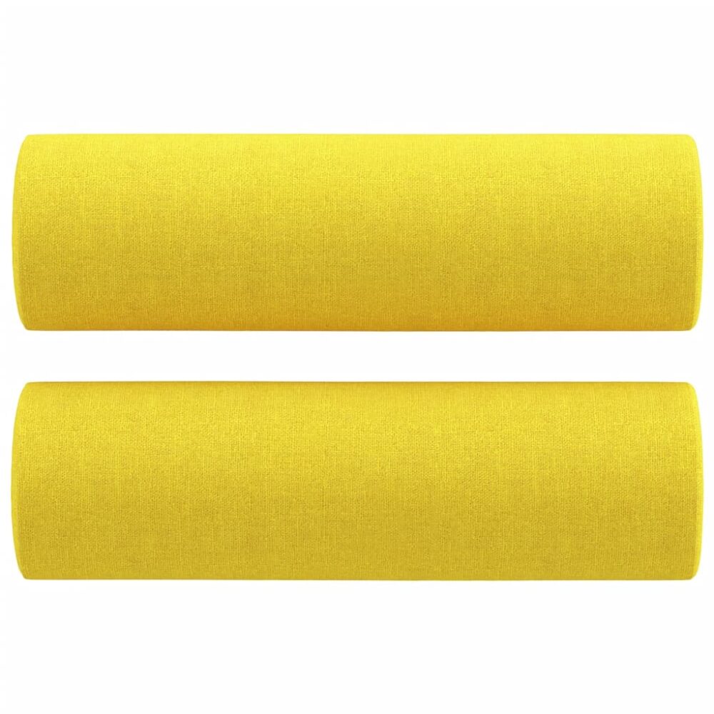 Sofá 2 lug. + almofadas decorativas 120 cm tecido amarelo-claro - PORTES GRÁTIS
