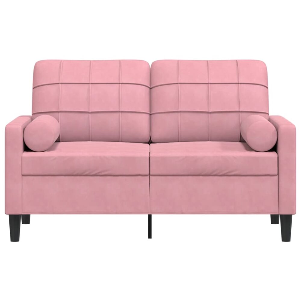 Sofá 2 lug. c/ almofadas decorativas 120 cm veludo rosa - PORTES GRÁTIS