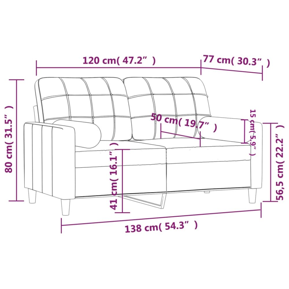 Este sofá de 2 lugares, que se destaca com o seu design moderno e almofadas decorativas, será um excelente lugar para conversar, ver TV ou simplesmente relaxar. Tecido durável: o tecido apresenta um aspeto simples e liso, sendo também respirável e duradouro.Estrutura robusta e estável: a estrutura de metal do sofá lounge assegura robustez e estabilidade.Capas de almofadas removíveis: graças ao fecho de correr, as capas destas almofadas decorativas são fáceis de remover e limpar quando necessário.Experiência de assento confortável: o sofá é altamente confortável com os assentos, apoios de braços e almofadas de encosto espessamente acolchoados. Além disso, as almofadas decorativas atribuem um conforto adicional quando estiver sentado ou deitado. Máximo de 110 kg por assento. Tenha em atenção o risco de fogos abertos e outras fontes de calor forte nas proximidades do produto.