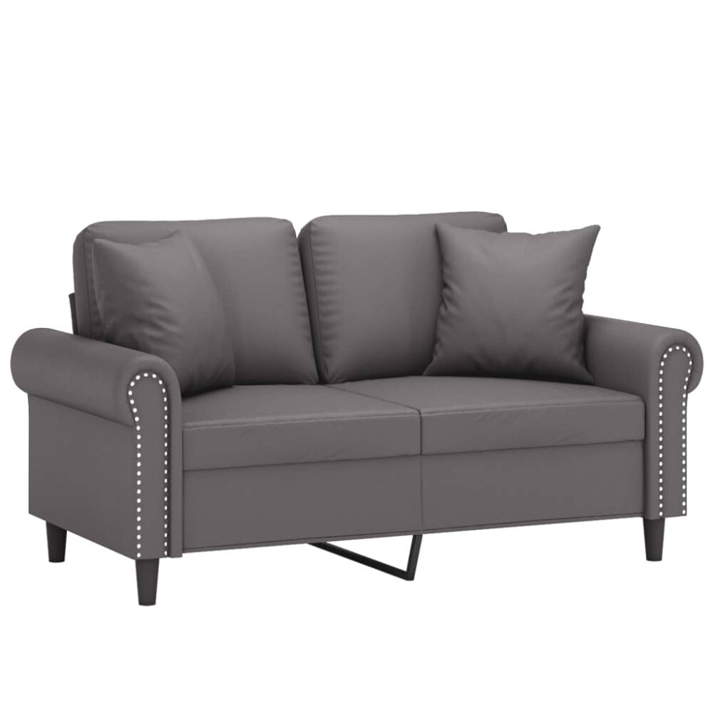 Sofá 2 lugares + almofadas decorativas 120cm couro artif. cinza - PORTES GRÁTIS