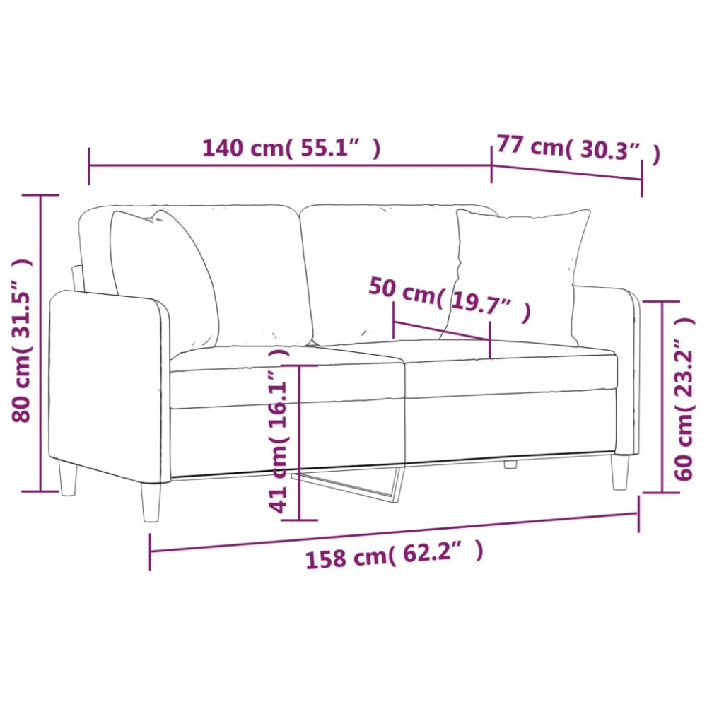 Este sofá de 2 lugares, que se destaca com o seu design moderno e almofadas decorativas, será um excelente lugar para conversar, ver TV ou simplesmente relaxar. Tecido durável: o tecido apresenta um aspeto simples e liso, sendo também respirável e duradouro.Estrutura robusta e estável: a estrutura de metal do sofá lounge assegura robustez e estabilidade.Almofadas decorativas com enchimento: estas almofadas decorativas possuem enchimento de algodão PP, pelo que não terá de se preocupar em comprá-lo.Experiência de assento confortável: o sofá é altamente confortável com os assentos, apoios de braços e almofadas de encosto espessamente acolchoados. Além disso, as almofadas decorativas atribuem um conforto adicional quando estiver sentado ou deitado. Máximo de 110 kg por assento. Tenha em atenção o risco de fogos abertos e outras fontes de calor forte nas proximidades do produto.