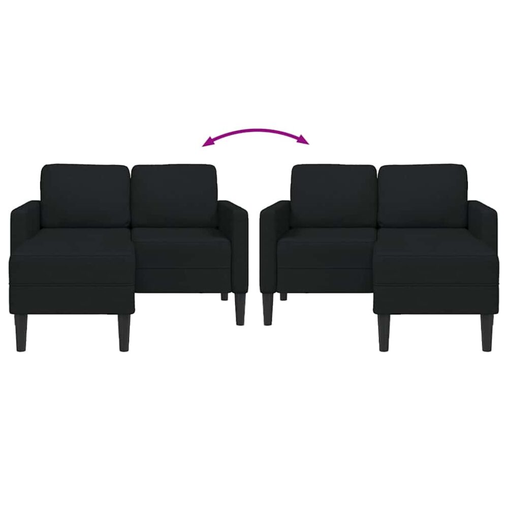 Sofá 2 lugares com Chaise em L 125 cm tecido preto - PORTES GRÁTIS