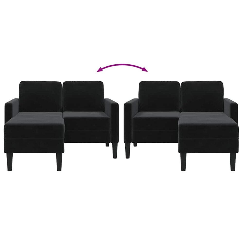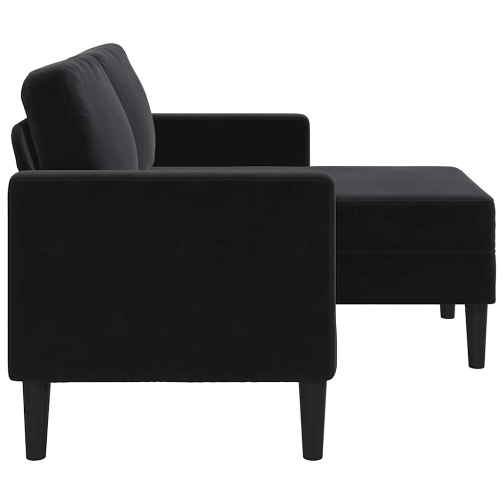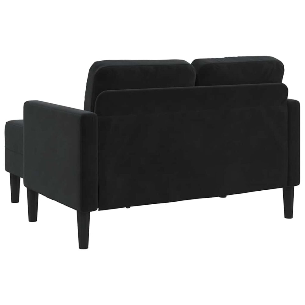 Sofá 2 lugares com Chaise em L 125 cm veludo preto - PORTES GRÁTIS