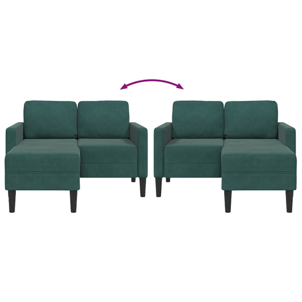 Sofá 2 lugares com Chaise em L 125 cm veludo verde-escuro - PORTES GRÁTIS