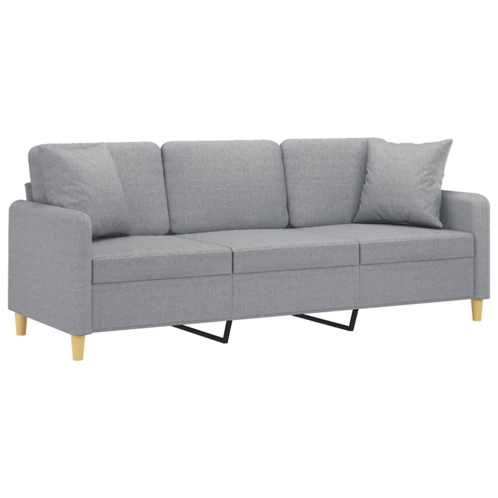 Este sofá de 3 lugares, que se destaca com o seu design moderno e almofadas decorativas, será um excelente lugar para conversar, ver TV ou simplesmente relaxar. Tecido durável: o tecido apresenta um aspeto simples e liso, sendo também respirável e duradouro.Estrutura robusta e estável: a estrutura de metal do sofá lounge assegura robustez e estabilidade.Almofadas decorativas com enchimento: estas almofadas decorativas possuem enchimento de algodão PP, pelo que não terá de se preocupar em comprá-lo.Experiência de assento confortável: o sofá é altamente confortável com os assentos, apoios de braços e almofadas de encosto espessamente acolchoados. Além disso, as almofadas decorativas atribuem um conforto adicional quando estiver sentado ou deitado. Máximo de 110 kg por assento. Tenha em atenção o risco de fogos abertos e outras fontes de calor forte nas proximidades do produto.