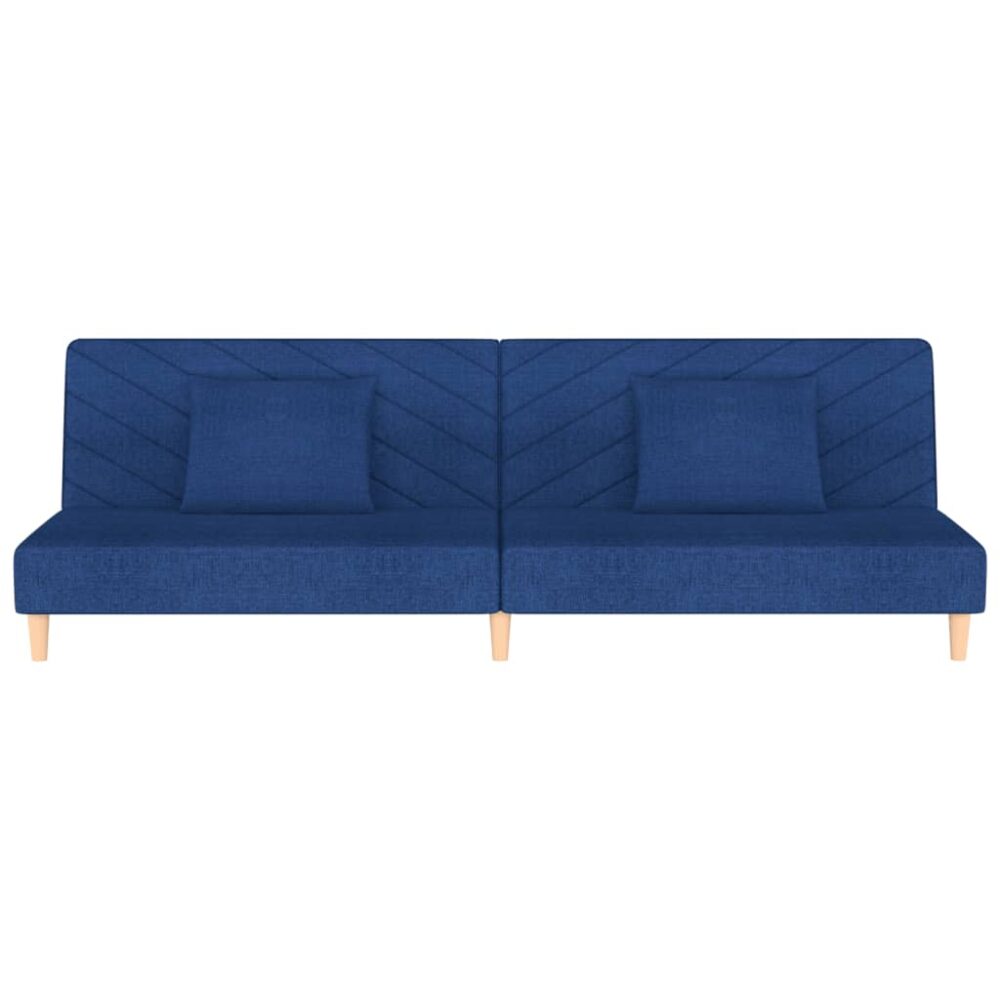 Sofá-cama 2 lugares com duas almofadas tecido azul - PORTES GRÁTIS