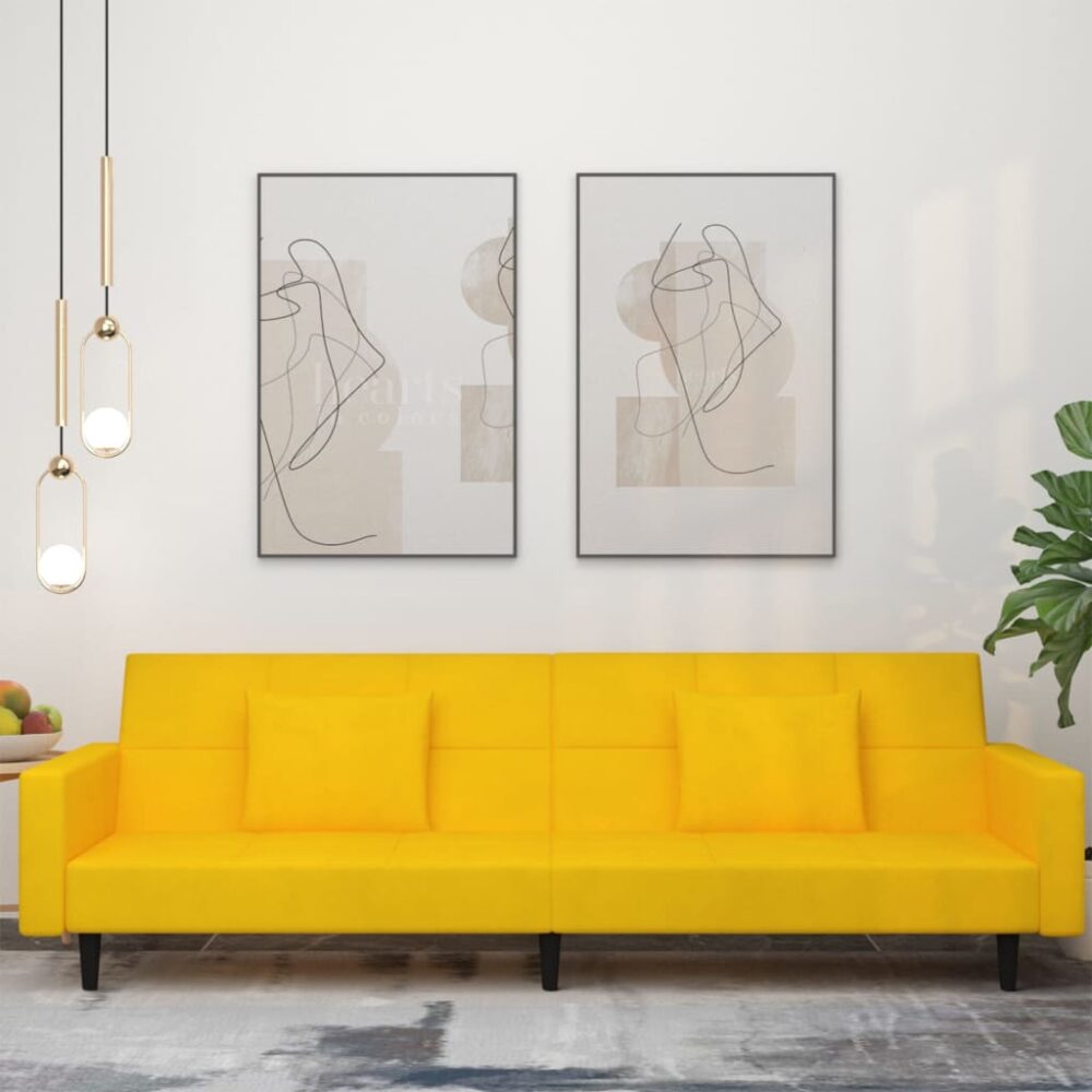 Sofá-cama 2 lugares com duas almofadas veludo amarelo - PORTES GRÁTIS