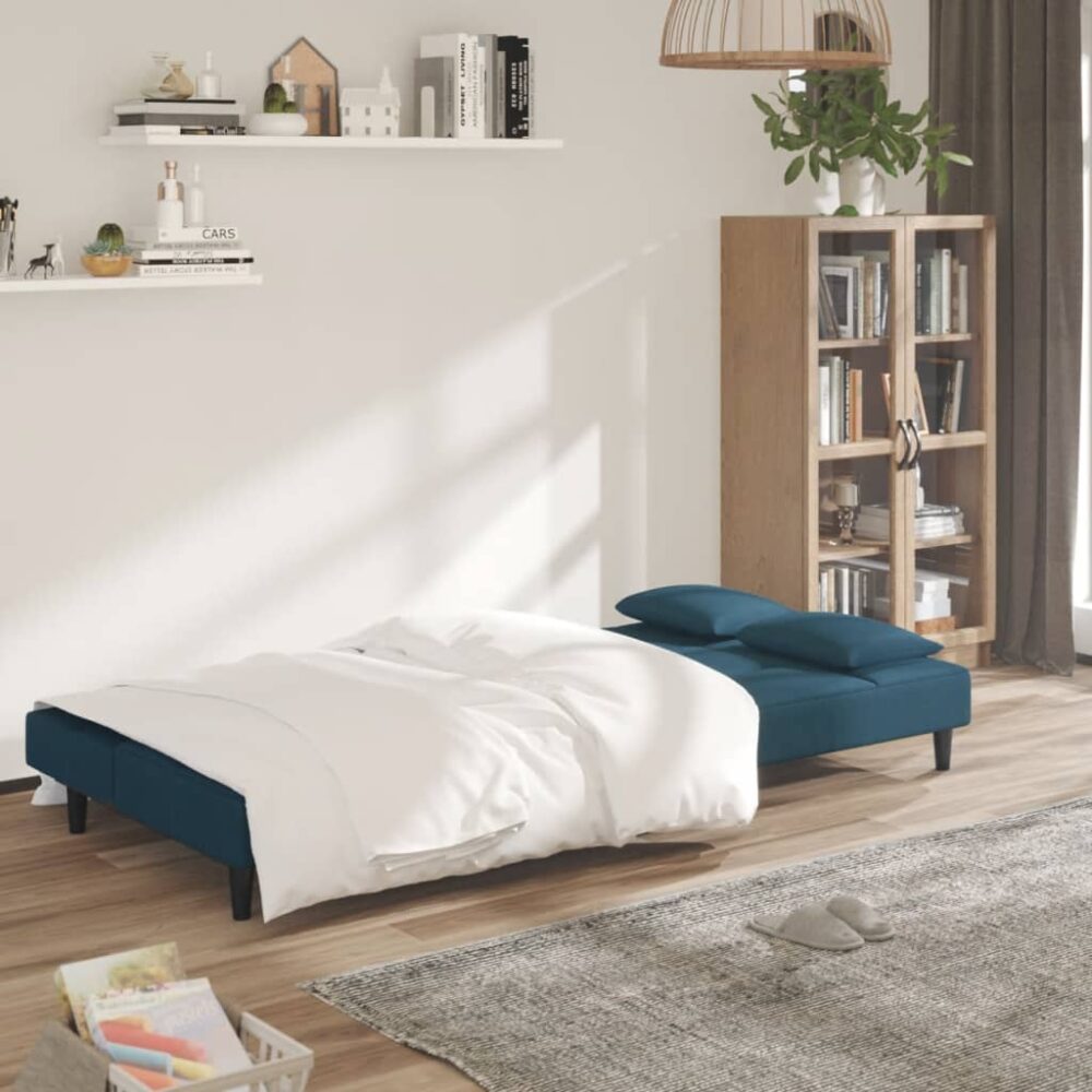 Sofá-cama 2 lugares com duas almofadas veludo azul - PORTES GRÁTIS